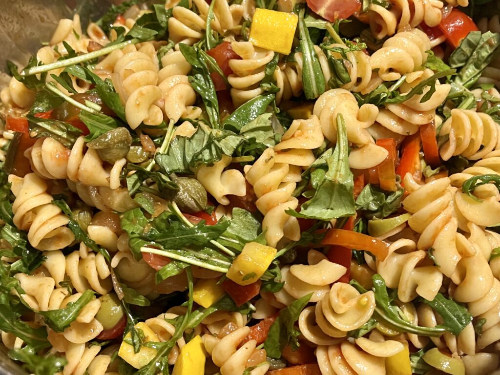 En resumen, esta ensalada de pasta mediterránea es un plato que lo tiene todo: sabor, frescura, versatilidad y, sobre todo, ingredientes saludables. La combinación de aceitunas, alcaparras, rúcula y albahaca fresca, junto con las verduras y el aderezo afrutado, hace de esta ensalada una opción irresistible para cualquier comida. Además, su preparación es sencilla y rápida, lo que la convierte en un plato ideal tanto para cocineros experimentados como para aquellos que están comenzando en la cocina.